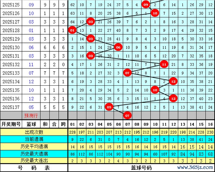 蓝球:上期蓝球号码为05,开出小 号、奇数,蓝球最近7期大小比为4:3,本期简约小 号蓝球出现,蓝球关爱07。